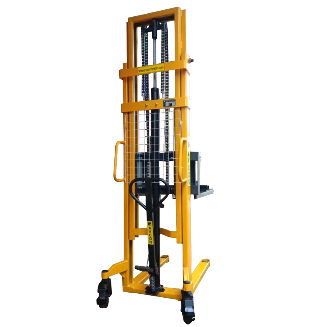 Avcon Manual Hand Stackers are efficient and reliable material handling solutions designed for lifting, stacking, and transporting palletized loads in warehouses, factories, and storage facilities. Built with a strong steel frame and a smooth hydraulic lifting system, these stackers offer safe operation, easy maneuverability, and consistent performance without the need for electricity, making them ideal for cost-effective and everyday industrial use.Built with heavy-duty steel construction, they ensure durability and stable performance in demanding work environments.