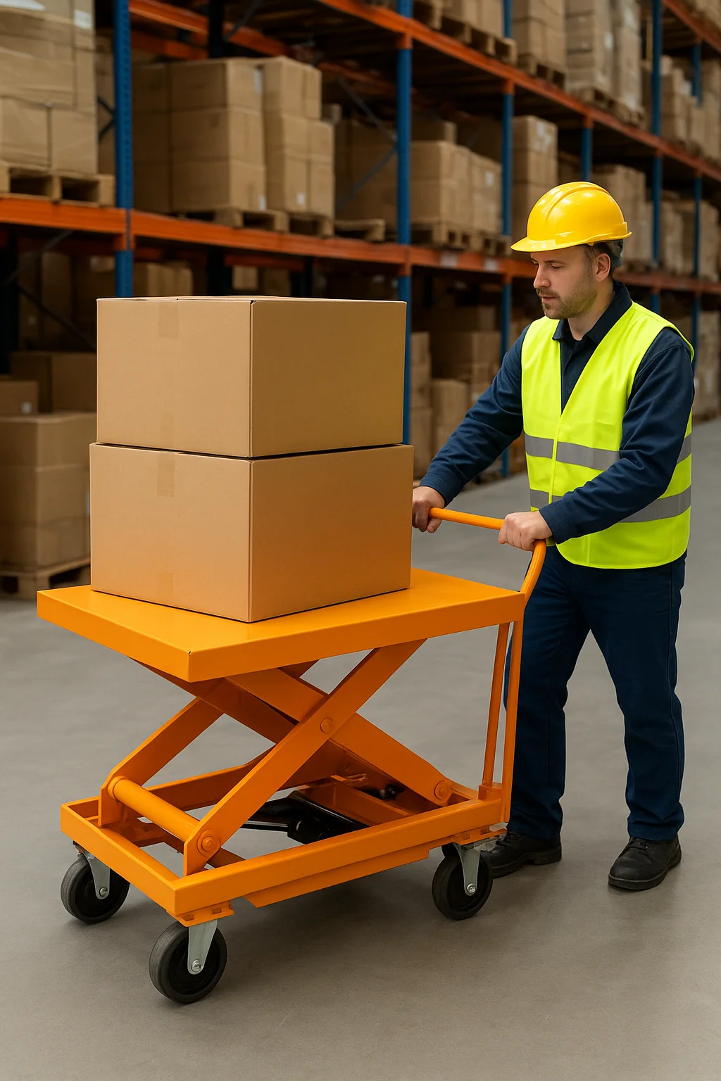 - Lockable Caster Wheels – Mobile wheels with locking mechanism to secure the lift in position during load handling and operation.