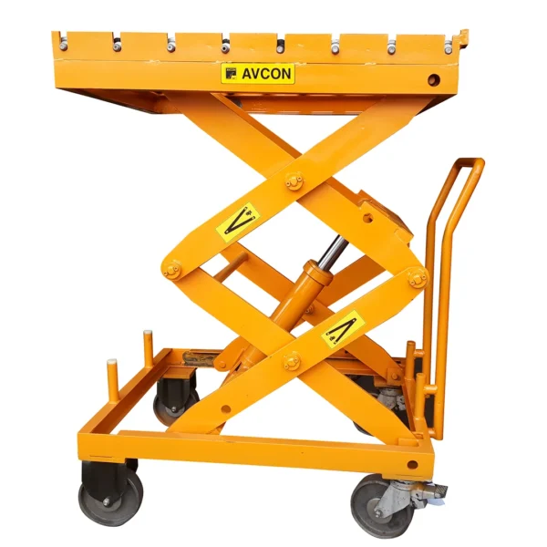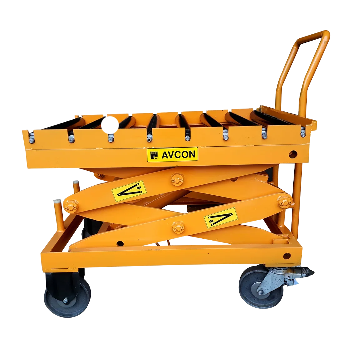 A manual scissor lift is a material handling platform that raises and lowers loads using a manual hydraulic foot pedal system combined with a hand-controlled descent lever. The X-shaped scissor mechanism expands vertically when the operator pumps the foot pedal, lifting the platform smoothly. Unlike powered alternatives, manual scissor lifts require no electricity, batteries, or fuel; the operator provides all power through simple, intuitive foot and hand controls.Avcon’s Manual Scissor Lifts deliver efficient, safe, and reliable vertical lifting with a user-friendly foot pedal and compact design for easy maneuvering in tight spaces. Built with heavy-duty steel and hydraulic precision, these lifts operate without external power, offering customizable load capacities and minimal maintenance needs—ideal for diverse industrial applications and enhancing workplace safety.